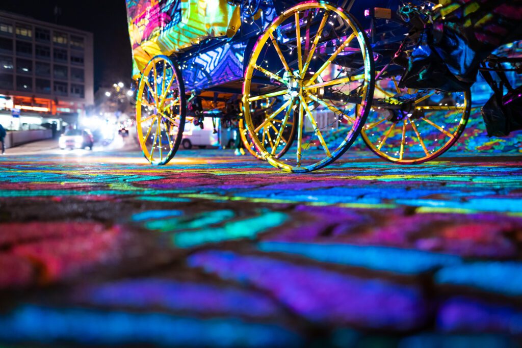 Cette année, Bô Noël propose aux familles d’embarquer à bord d’une calèche lumineuse pour partir à la découverte du Festival Lausanne Lumières 2020. Une façon insolite de s’immerger dans les projections artistiques géantes avec le charme d’un attelage de chevaux de traits. Thomas Reginster du manège de Savigny et son association Handynamique guideront les curieux au travers des rues illuminées de Lausanne du 24 novembre au 24 décembre.