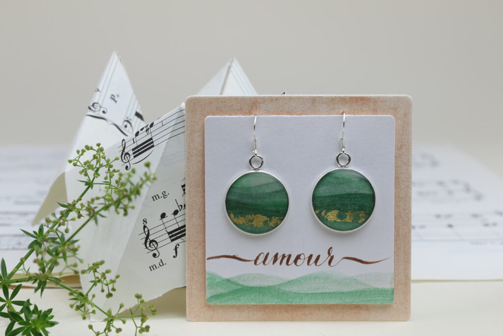 Entre encre et lumière, Emilie Singy crée des bijoux peint à l’aquarelle, légers comme des rêves.