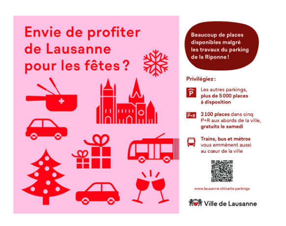 Pendant la période de la fin d’année, tout est prévu pour faciliter votre venue au centre-ville de Lausanne.