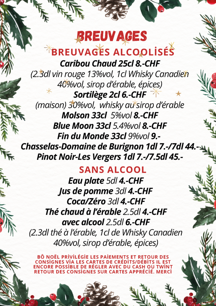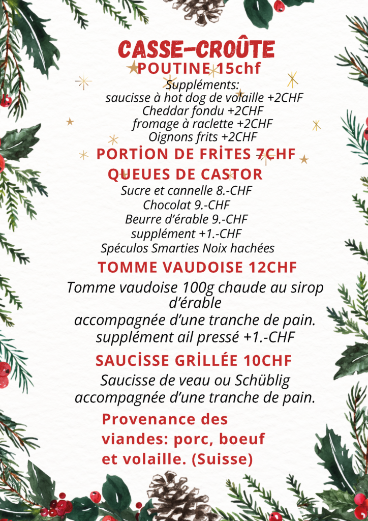 Niché au cœur du marché de noël, notre chalet vous offre une expérience chaleureuse et conviviale où vous pourrez déguster les saveurs uniques du canada.